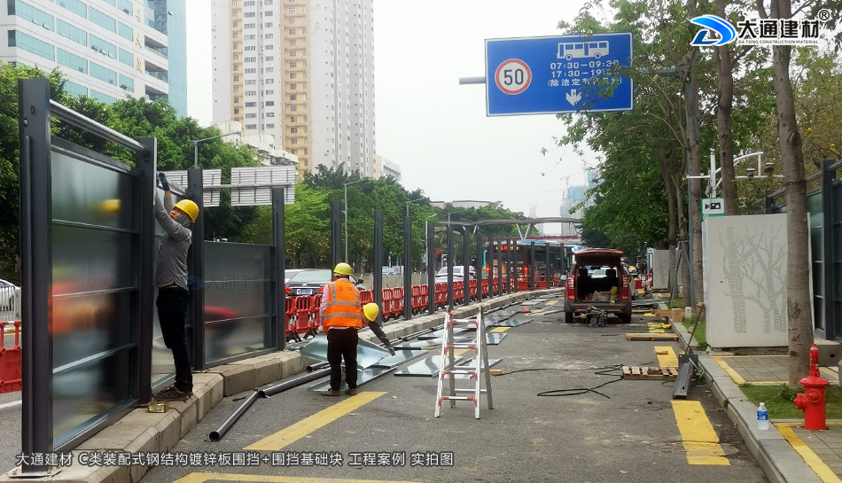 深圳市羅湖區黃貝街道項目工程使用的是深圳市大通建材提供的C類鍍鋅鋼結構圍擋+圍擋基礎塊,由大通建材公司專業團隊生產-銷售-配送-安裝等服務
