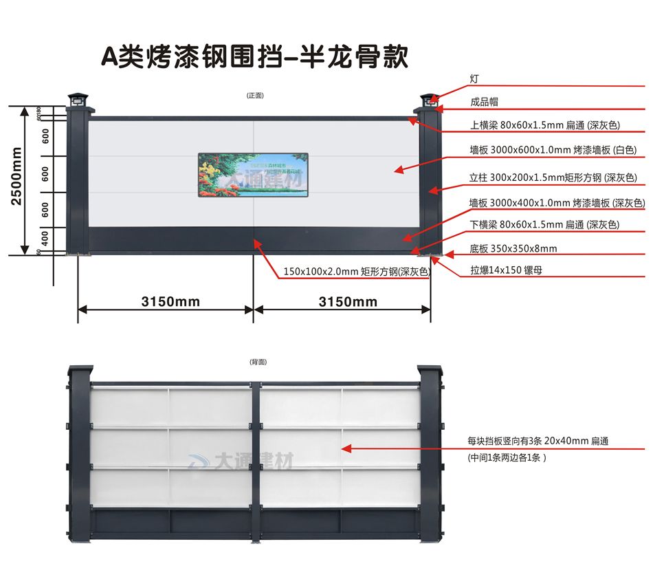 A類烤漆鋼圍擋 半龍骨款-深圳圍擋建筑工地工程-A/B/C類圍擋-深圳市大通建材有限公司鋼圍擋生產定制廠家