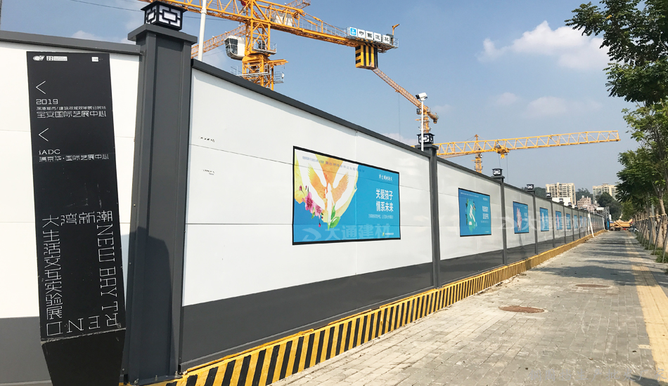 深圳市大通建材烤漆鋼結(jié)構(gòu)圍擋a款-深圳寶安藝展中心工地施工圍擋案例