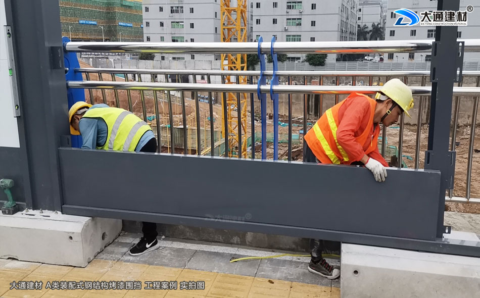專業(yè)圍擋供應(yīng)廠家深圳市大通建材有限公司,為東莞市麻涌鎮(zhèn)工程施工項(xiàng)目單位提供的A類裝配式鋼結(jié)構(gòu)烤漆工地施工圍擋半龍骨款及圍擋基礎(chǔ)塊等隔離防護(hù)產(chǎn)品,應(yīng)用到工程項(xiàng)目中效果如下圖展示。