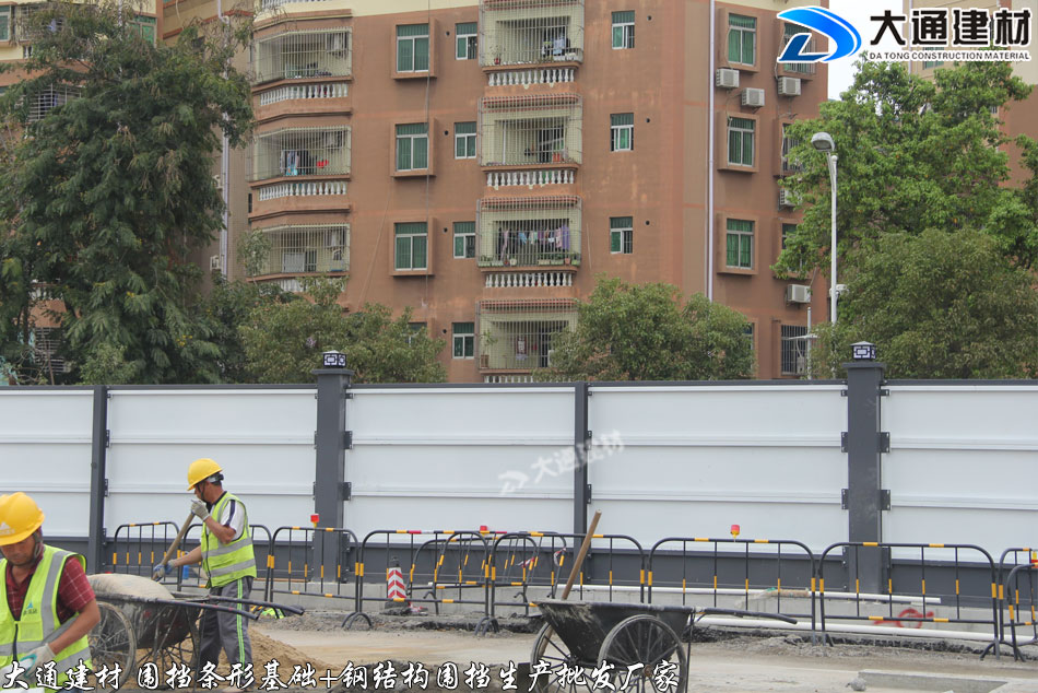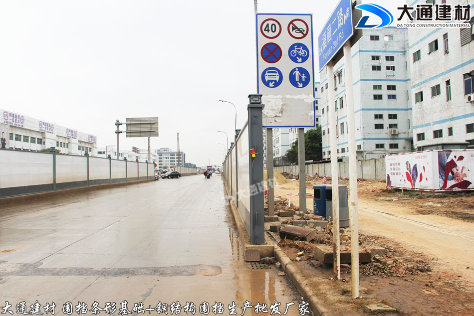 深圳市大通建材有限公司為東莞石龍鎮市政道路施工工程提供圍擋條形基礎+鋼圍擋 批發 送貨安裝等服務