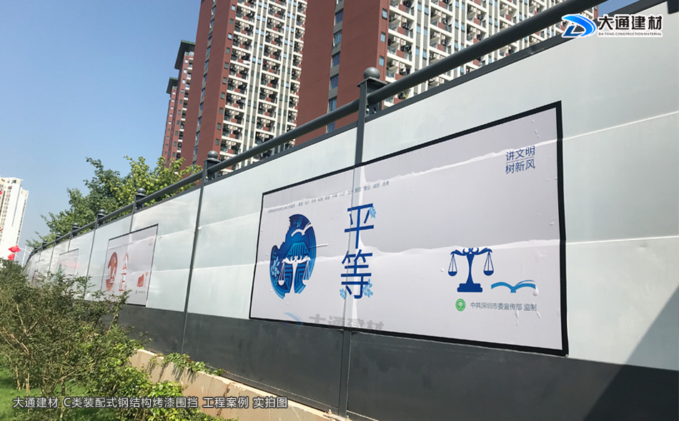 深圳市大通建材有限公司,大格局、通天下! 新型裝配式鋼結構圍擋A款/B款/C款,PVC圍擋,圍擋基礎,工地大門等產品生產廠家電話13826562448