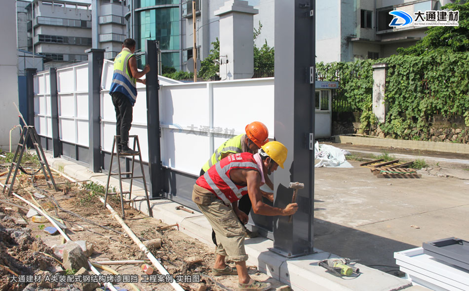 深圳市大通建材有限公司,大格局、通天下! 新型裝配式鋼結構圍擋A款/B款/C款,PVC圍擋,圍擋基礎,工地大門等產品生產廠家電話13826562448
