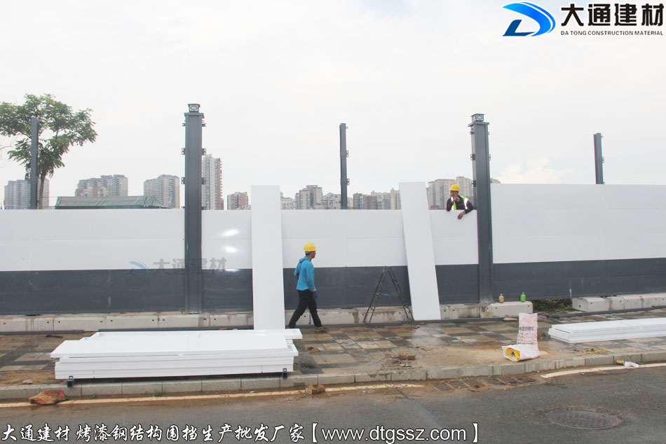 深圳大通裝配式鋼圍擋-A類烤漆圍擋是一款符合珠海市政施工標準的圍擋,因為采用鋼結構材質制作而成的圍擋,具有強度高、彈性模量高的優點,可以承受非常大的重力和沖擊力。適合道路施工、地產工程施工等工程選用。