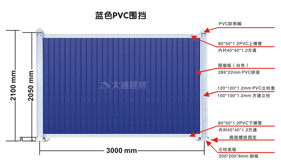 圖展示的是大通藍色PVC圍擋 規格參數圖
