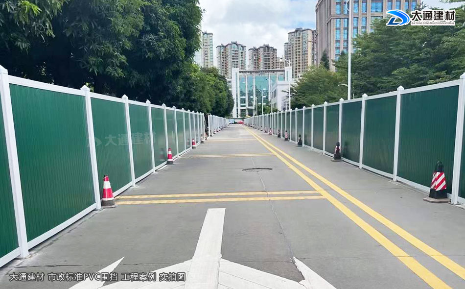 深圳大通建材PVC圍擋表面經烤漆工藝噴涂、表面光滑,具有美觀環保、安全穩固、經久耐用等特點,適合市政道路建設施工、地產工程項目建設施工、管網改造施工、路橋維護施工等工程選用。