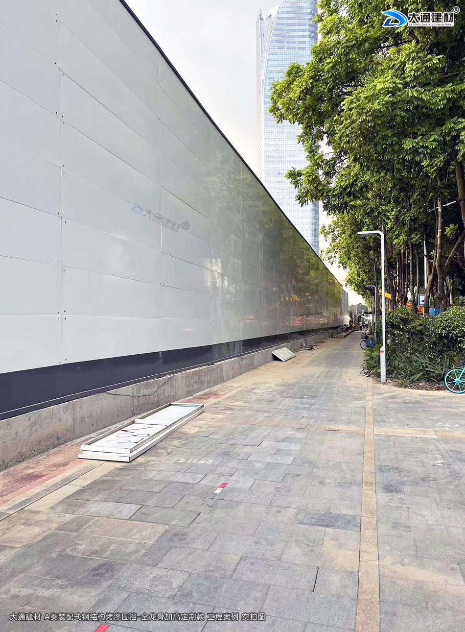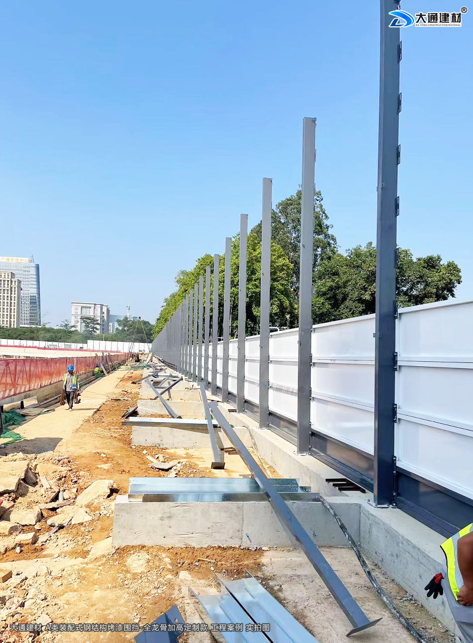 深圳大通建材生產(chǎn)的A類裝配式烤漆鋼圍擋全龍骨6米高定制款 適用于各種項目工程:如市政工程建設(shè)施工、房地產(chǎn)項目建設(shè)施工、地鐵修建項目施工、管網(wǎng)改造、小區(qū)改造、城市建設(shè)、道路修建施工等工程修施工外圍使用