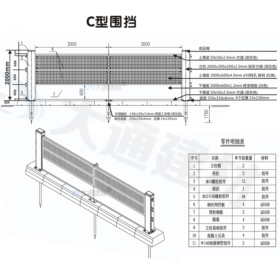 深圳市大通建生產(chǎn)的C型圍擋采用鋼結(jié)構(gòu)設(shè)計(jì),更安全穩(wěn)固,抗風(fēng)能力更強(qiáng),大多數(shù)能抵抗10級(jí)以上的風(fēng)力,適用于市政建設(shè)施工、房地產(chǎn)項(xiàng)目施工、高架橋施工、地地鐵項(xiàng)目施工、路橋維護(hù)施工、隧道施工、立面改造施工、廠房隔斷施工等各種項(xiàng)目工程,一款好的圍擋能為工地施工安全保駕護(hù)航。大通為各項(xiàng)目工程單位提供圍擋生產(chǎn)定制、施工安裝等包工包料的服務(wù),了解更多“大通C型圍擋”詳情 請(qǐng)致電13826562448 梁先生