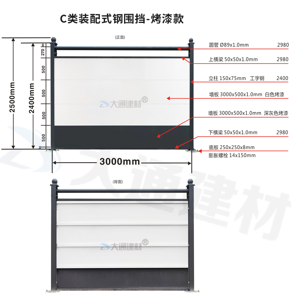 深圳大通建材 裝配式鋼結構烤漆圍擋-惠州C款  生產批發源頭廠家